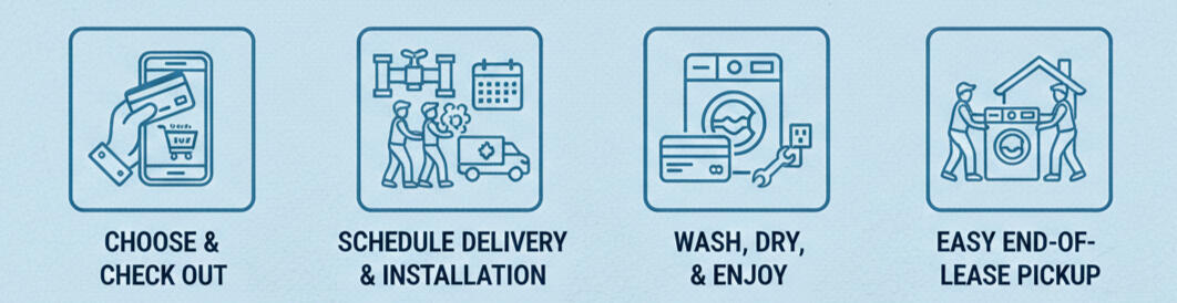 High-quality washers and dryers delivered, installed, and maintained. Easy monthly payments. Flexible lease terms. No maintenance fees.